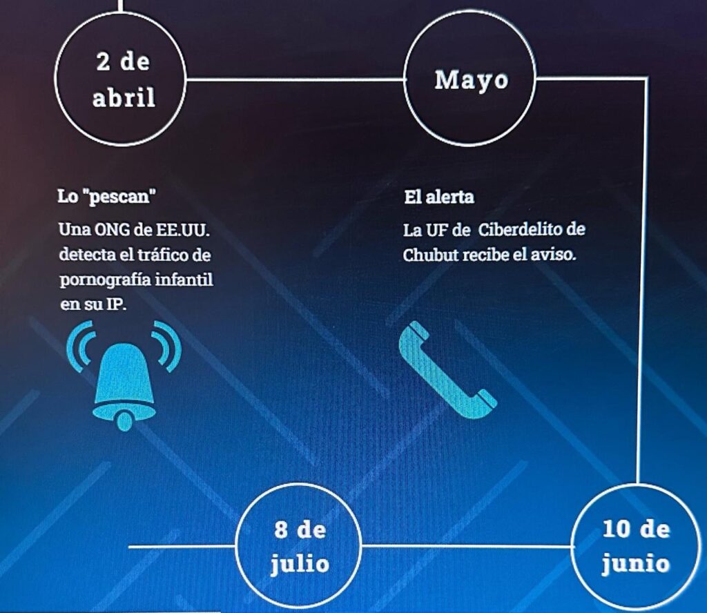 La investigación tiene origen en la ONG de Estados Unidos, National Center forMissing and ExploitedChildren (Centro Nacional para Niños Desaparecidos y Explotados), que detectó el tráfico de material pornográfico el pasado 2 de abril en la IP de la computadora de J.O.J., quien es médico forense en el Poder Judicial de Chubut.