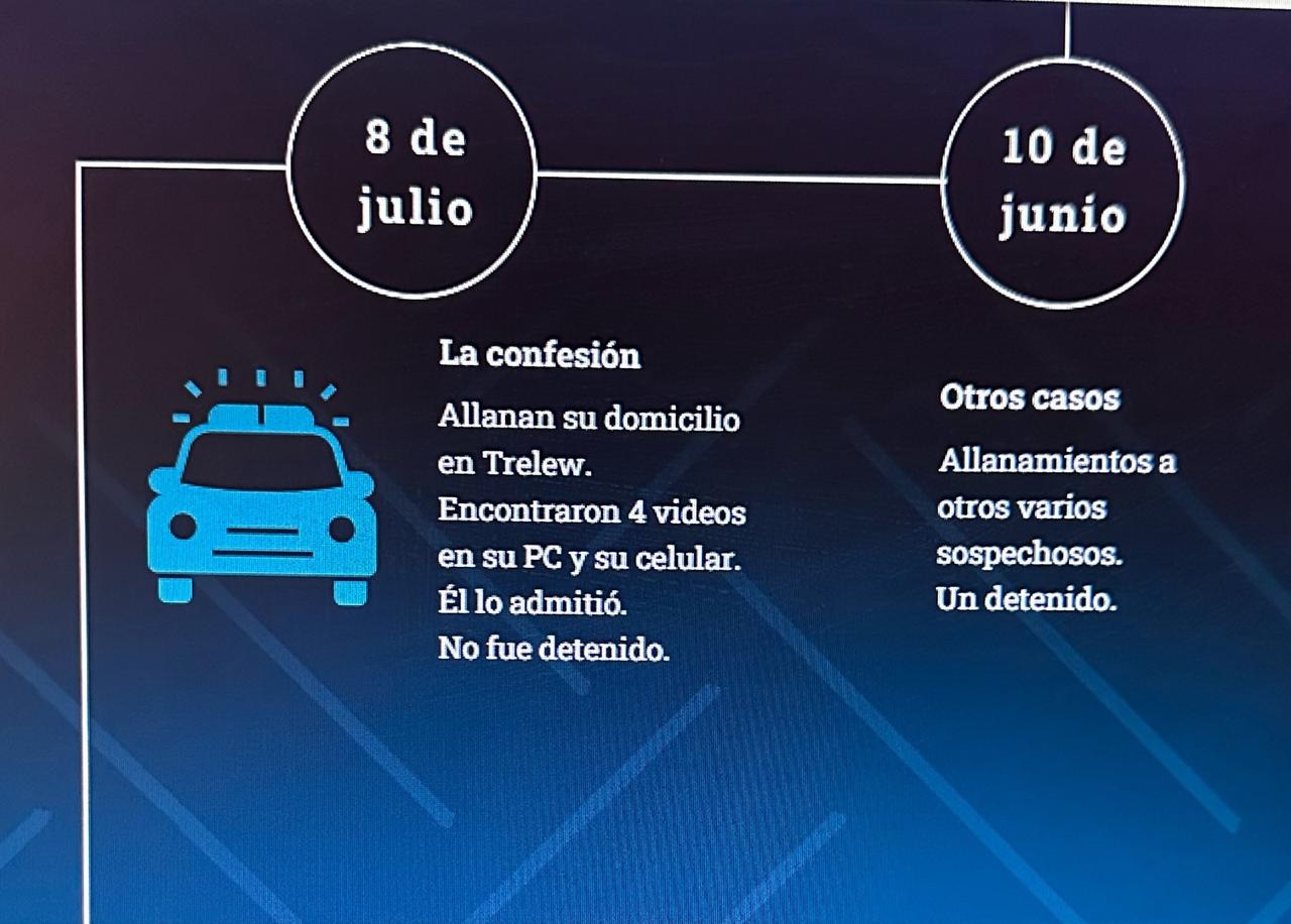 La Unidad Fiscal Especializada en Cibercrimen y Ciberdelito de Chubut, que conduce el fiscal Fernando Rivarola, recibió el aviso en mayo, pero ninguna autoridad judicial fue anoticiada de las sospechas contra el funcionario, cuyo domicilio en Trelew recién fue allanado el 8 de julio, así como el comercio de su esposa. Previamente, el 10 de junio, hubo varios allanamientos a otras personas sospechosas, que incluso terminaron con un individuo detenido.