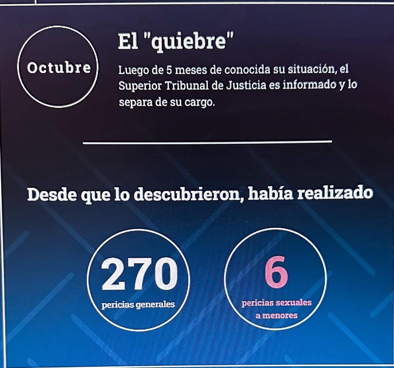 Pero recién tres meses después de secuestrar ese material, se dio aviso al Superior Tribunal de Justicia, que apartó a J.O.J. de su cargo. En todo ese lapso, es decir, desde mayo cuando se dio aviso a la fiscalía local, y octubre cuando fue apartado de su cargo, el médico realizó –según información documentada- no menos de 6 pericias en el cuerpo de menores víctimas de abuso, lo que generó indignación en varios de los padres que están ya están consultando por el tema, que hasta puede generar planteos judiciales para anular el resultado de esos informes.