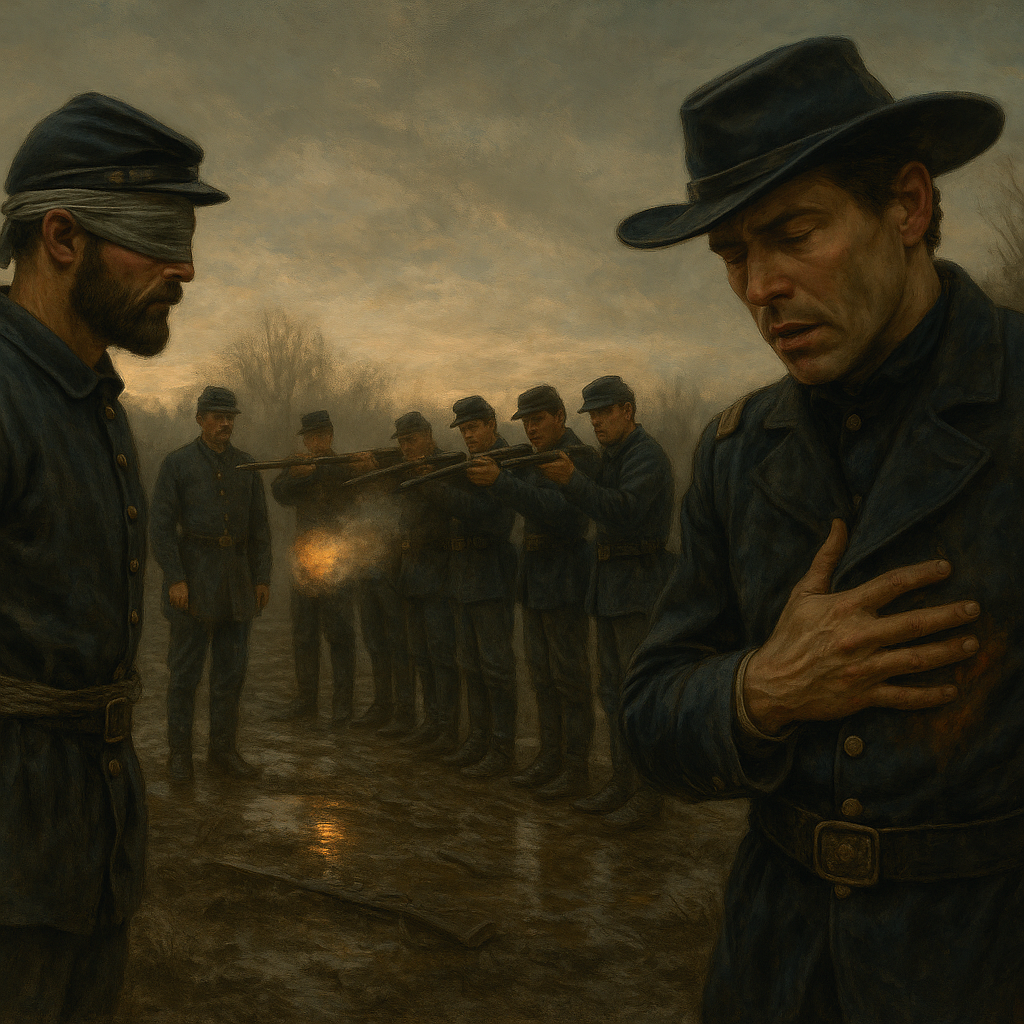 Así ocurrió que uno de los hombres de Buell, el soldado Bennett Story Greene, cometió la indiscreción de golpear a un oficial. De haber llevado más guerra a cuestas es seguro que no lo hubiese hecho, pero, como sir Andrew Aguecheek, no tuvo tiempo más que para contemplar su desgracia, sin que se le concediese la oportunidad de retractarse. Se le negó el tiempo necesario para que corrigiera esas sus nada militares maneras, en suma… Fue arrestado, acusado de insubordinación, juzgado por un tribunal militar y condenado a morir fusilado.