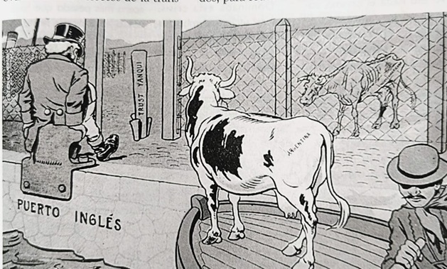 “Nuestro ganado en Inglaterra”, caricatura publicada en Caras y Caretas