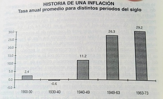 Entre sus perjuicios se enumeraba por lo general alguna combinación de éstos: la incertidumbre respecto a los precios futuros, que desalentaba los planes de largo plazo; la intensificación de las múltiples pujas distributivas derivada de la necesidad de redefinir los precios continuamente; el deterioro de las cuentas públicas, al quedar rezagado el valor de impuestos y tarifas; el desaliento al crédito en moneda local; su carácter discriminatorio contra quienes menos acceso tienen a mecanismos de defensa como el mercado de cambios; y, finalmente, los costos asociados al menor uso del dinero, del que la gente se desprende más rápido cuando los precios están aumentando. El problema era que, aunque se coincidiera en la descripción cualitativa de sus efectos, era difícil o imposible medir su gravedad. El desacuerdo sobre el daño que provocaba la inflación seguramente influyó para que los distintos gobiernos dieran distinta prioridad a las políticas de estabilización de precios. Eso se reflejó en la variabilidad de la inflación. Tomando el decenio 1963-73, el promedio anual de aumento de precios fue 29%, pero hubo años (1972, 1973) cercanos a 60% y un año (1969) en que la inflación fue de un solo dígito (algo que no se repetiría en el siguiente cuarto de siglo).