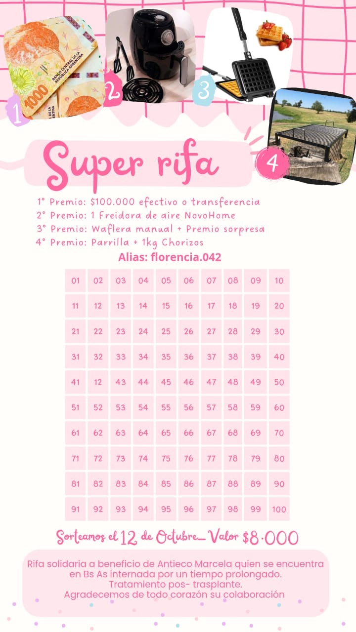 Para poder costear este tipo de gastos, familiares y conocidos de Marcela, realizan una “Súper Rifa”, que cuenta con importantes premios en juego.