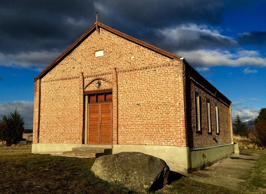 Luego, el primer edificio fue construido sobre el lado sur del río Corintos, en tierra perteneciente al señor Antonio Miguens. Posteriormente, la capilla se mudó a este lugar sobre el río Percy, cerca de lo que más tarde sería Trevelin, donde levantaron un edificio un poco más amplio y cómodo y, luego en el año 1910, el local que conocemos nosotros hoy.