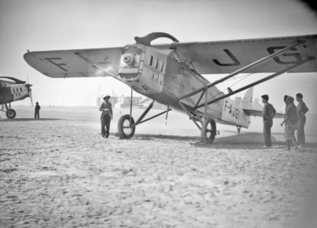 Llegaron antes que el avión (un Late 26) el cual, como un cangrejo en el aire y efectuando maniobras como para lograr la posición más conveniente, se deslizaba casi en marcha hacia atrás y siempre fuertemente sacudido, dando la impresión de que, en cualquier momento, el piloto perdería el control y el viento arrastraría la máquina y daría con ella en tierra, como un barrilete sin cola.