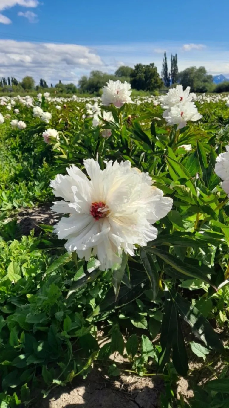 Originarias de Asia, las peonías encontraron en este rincón cordillerano un clima ideal para desplegar toda su belleza. Blancas, rosadas, bordó, rojas profundas, se suceden unas a otras en un degradé hipnótico que invita a caminar despacio, a mirar de cerca, a dejarse envolver. Entre noviembre y diciembre alcanzan su esplendor máximo y confirman por qué son una de las flores de corte más valoradas del mundo: elegantes, de textura aterciopelada y sorprendente duración.