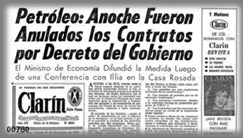El diario Clarín reflejaba el punto de vista de los frondicistas. El jefe de redacción y editorialista, Oscar Camilión, debía hacerse cargo de sostener la línea de pensamiento del desarrollo industrialista que apoyaba el dueño de Clarín, Roberto Noble. En consecuencia, indiferente a las estadísticas positivas, hacía hincapié en la “baja abrupta” de la inversión, de 93 millones de dólares que ingresaron en 1960, a los 44 que ingresaron en 1965; con tales números, destaca, la macroeconomía se orienta a sostener las mismas estructuras; y con referencia al petróleo señalaba que aumentaron las importaciones al 35%.