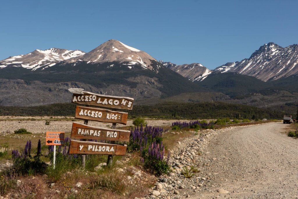 “Acá no entra nadie”, dice Muñoz. Para llegar hay que hacerlo desde Río Pico, a 40 kilómetros, un pueblo con algunos comercios de los que se abastecen. La inhóspita ruta 19 de ripio penetra por un valle de mallines, huellas de cornisa hasta terminar en un caserío ordenado donde se destaca sobre un mástil, alta y radiante, la bandera argentina, con la cordillera detrás.