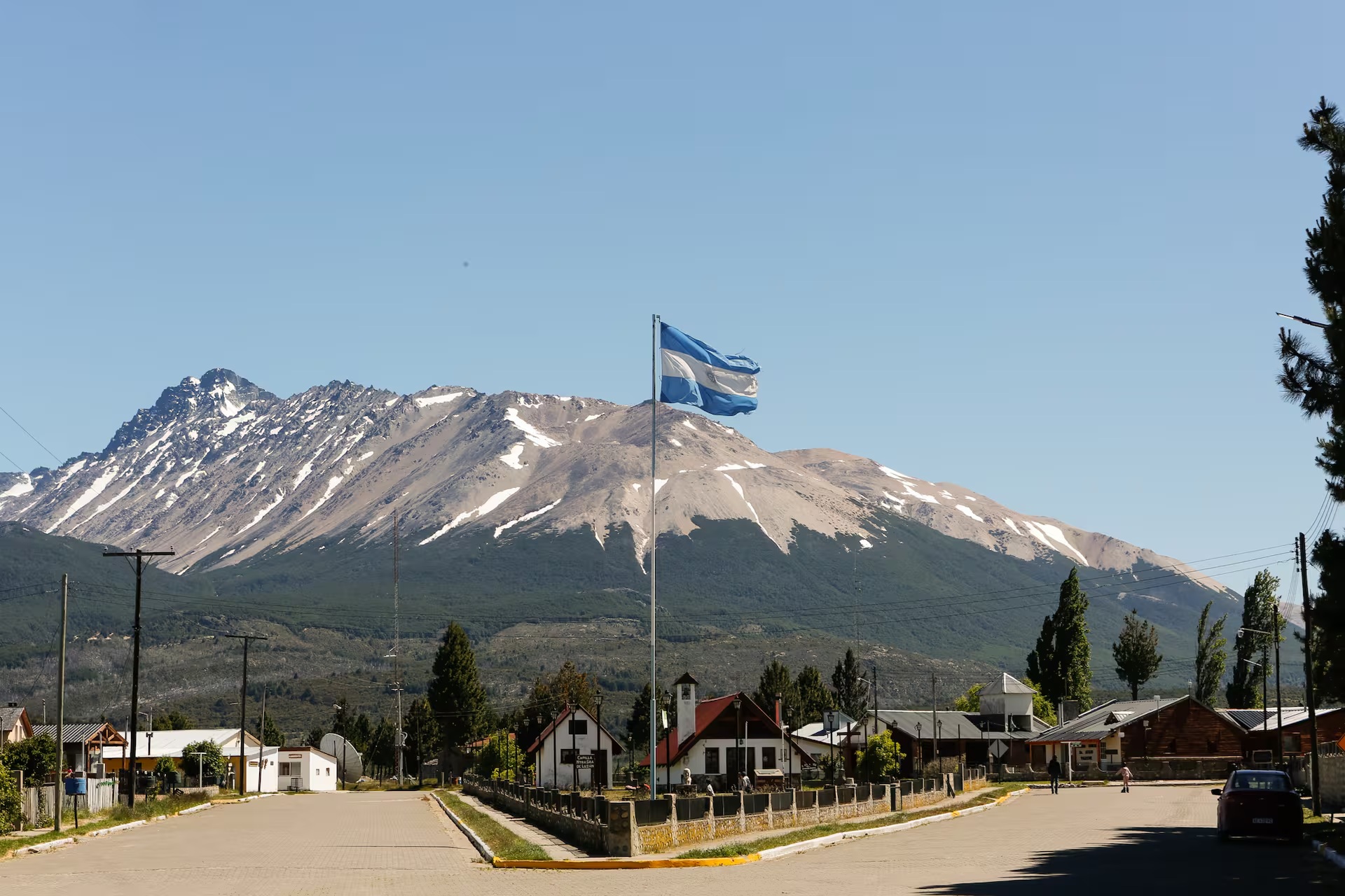 “Acá no entra nadie”, dice Muñoz. Para llegar hay que hacerlo desde Río Pico, a 40 kilómetros, un pueblo con algunos comercios de los que se abastecen. La inhóspita ruta 19 de ripio penetra por un valle de mallines, huellas de cornisa hasta terminar en un caserío ordenado donde se destaca sobre un mástil, alta y radiante, la bandera argentina, con la cordillera detrás.