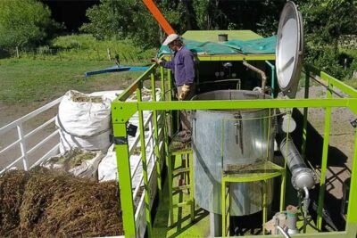 Simultáneamente, se emplea un equipo móvil en el campo que cuenta con un destilador de 1500 kilos lo que permite extraer las esencias directamente de las plantas frescas, aprovechando su mayor rendimiento y calidad.