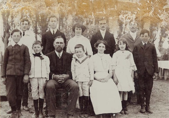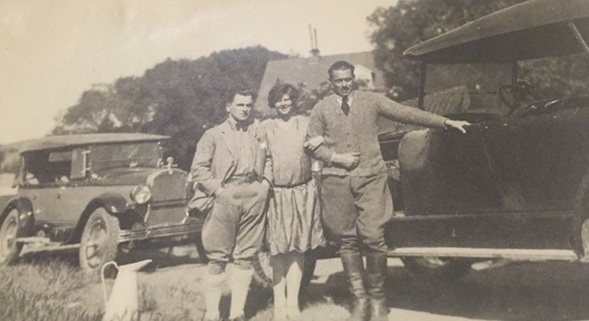 Alexander Galli, abuelo de Esteban y Juan, junto a amigos en Santa Cruz, década de 1920. Crédito: archivo familia Gallie.
