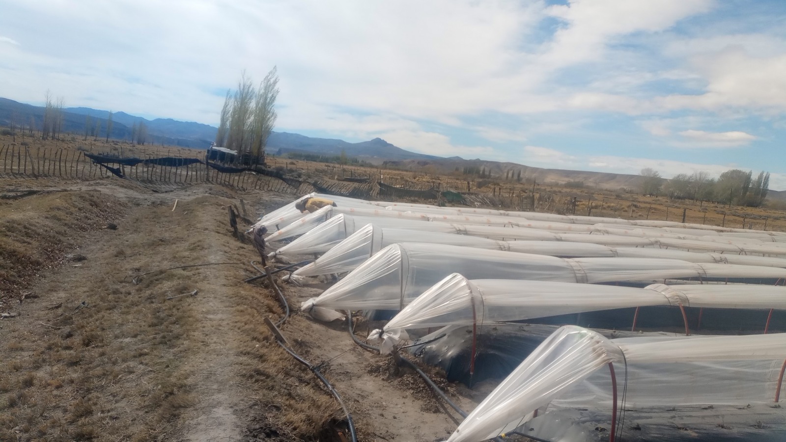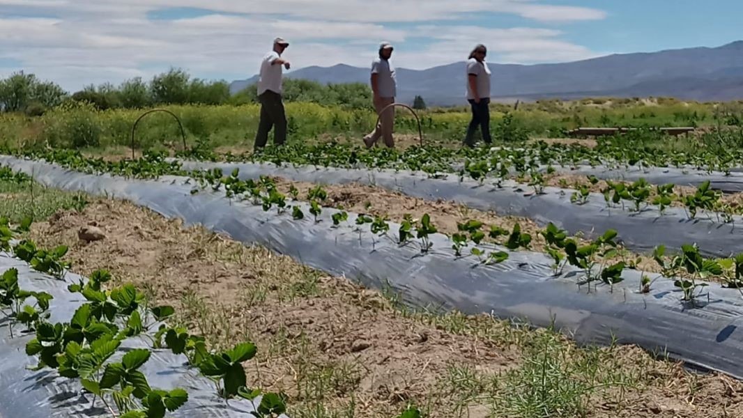 Imagen de la chacra “La Humildad”, de la familia Bravo en la zona de Tecka. Allí se producen frutillas agroecológicas.