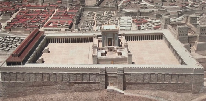 Cincuenta escalones conducían a una puerta que se abría al patio de Israel, accesible a cualquier varón judío y que llevaba al exclusivo patio de los Sacerdotes. Dentro se alzaba el santuario, el Hekhal, en cuyo interior se encontraba el Santo de los santos, que descansaba sobre la roca en la que, según la tradición, Abraham había estado a punto de sacrificar a su hijo Isaac, y donde David había construido su altar. En aquel lugar, los sacrificios se llevaban a cabo sobre el altar de los Holocaustos, orientado al patio de las mujeres y al monte de los Olivos.