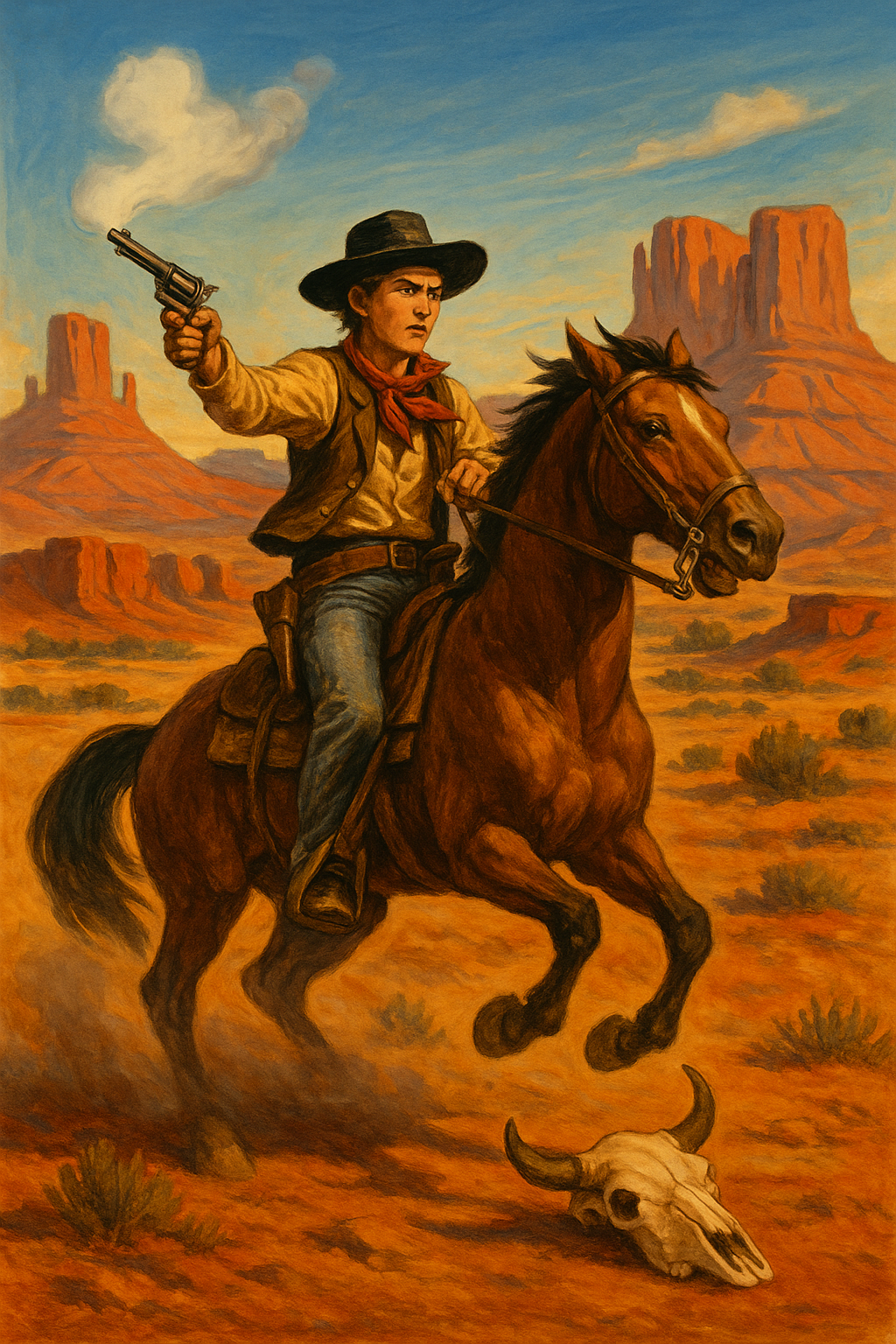 La imagen de las tierras de Arizona, antes que ninguna otra imagen: la imagen de las tierras de Arizona y de Nuevo Méjico, tierras con un ilustre fundamento de oro y plata, tierras vertiginosas y aéreas, tierras de la meseta monumental y de los delicados colores, tierras con blanco resplandor de esqueleto pelado por los pájaros. En esas tierras otra imagen, la de Billy the Kid: el jinete clavado sobre el caballo, el joven de los duros pistoletazos que aturden el desierto, el emisor de balas invisibles que matan a distancia, como una magia.