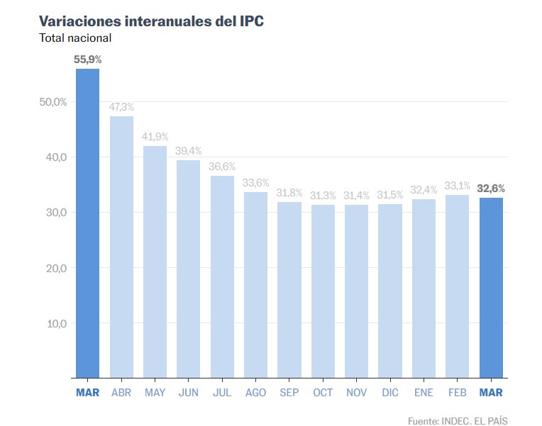 El IPC, difundido por el Instituto Nacional de Estadísticas y Censos (Indec), es de vital importancia para la gestión de Milei, que presenta la merma de la inflación como el principal logro de su plan de ajuste fiscal y monetario, tras asumir en diciembre de 2023 con una tasa de 211% anual. Desde ese momento, el dato comenzó a reducirse y tocó su piso en mayo de 2025 (1,5%), punto desde el cual inició una lenta pero sostenida escalada. A esta altura del año, la esperanza de cerrar 2026 con el 10% de inflación anual proyectado en el presupuesto oficial ya se desvaneció. Solo en los primeros tres meses acumula 9,4% y el número se eleva a 32,6% en la comparación interanual.