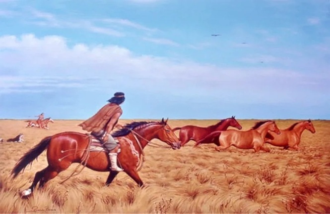 Los indios patagónicos y tehuelches, mapuches o araucanos, llegando a San Luís y Córdoba con las tribus ranqueles, lo adoptaron y sus hábitos cambiaron… ¡Sus vidas, cambiaron gracias al caballo! Resulta muy elocuente la afirmación de Gabriel Huarte, al decir: “Cuando el indio se convirtió en jinete, dejó de ser ‘determinado’, para convertirse en ‘determinante’”.