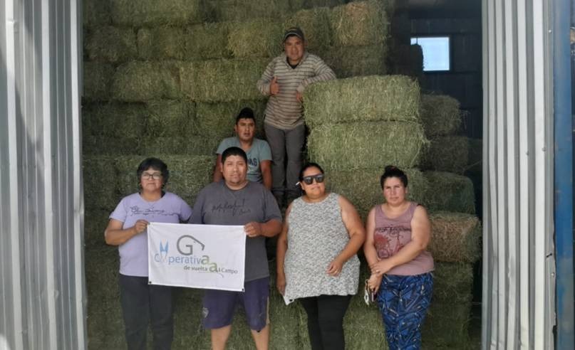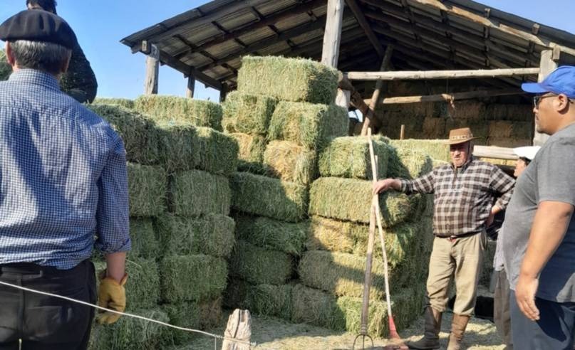 Los productores de la Cooperativa “De vuelta al campo” de Paso de Indios, colaboraron con 200 fardos de pasto.