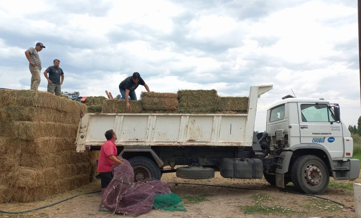 En la localidad de Paso de Indios los pequeños productores de la Cooperativa ‘De vuelta al campo’ compraron 200 fardos, que se llevaron primero a Cushamen y de ahí a Cholila.