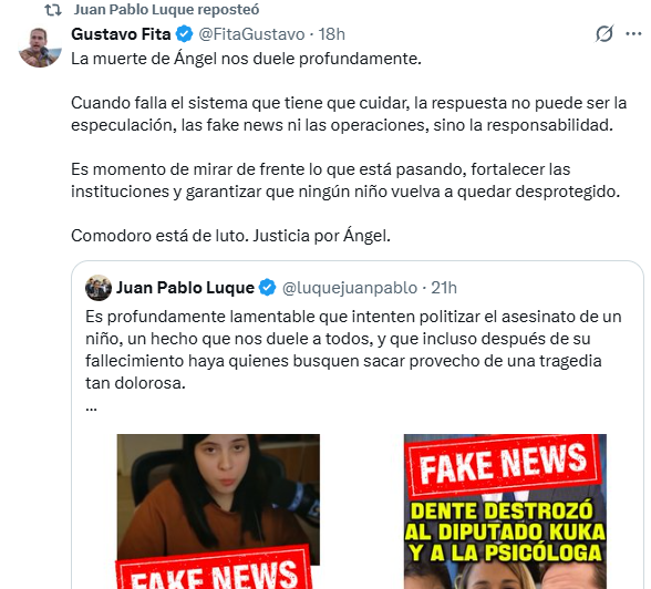 En medio de la conmoción por el crimen de Ángel, el exintendente de Comodoro Rivadavia y actual diputado nacional Juan Pablo Luque salió a responder públicamente a las acusaciones que comenzaron a circular en redes sociales, donde se lo vincula con la designación de la psicóloga que habría intervenido en el proceso de revinculación del menor con su madre.