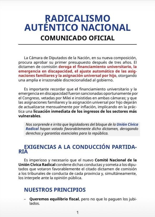 Radicalismo Auténtico: “Queremos equilibrio fiscal pero no a costa de los más vulnerables”19 diciembre, 2025
