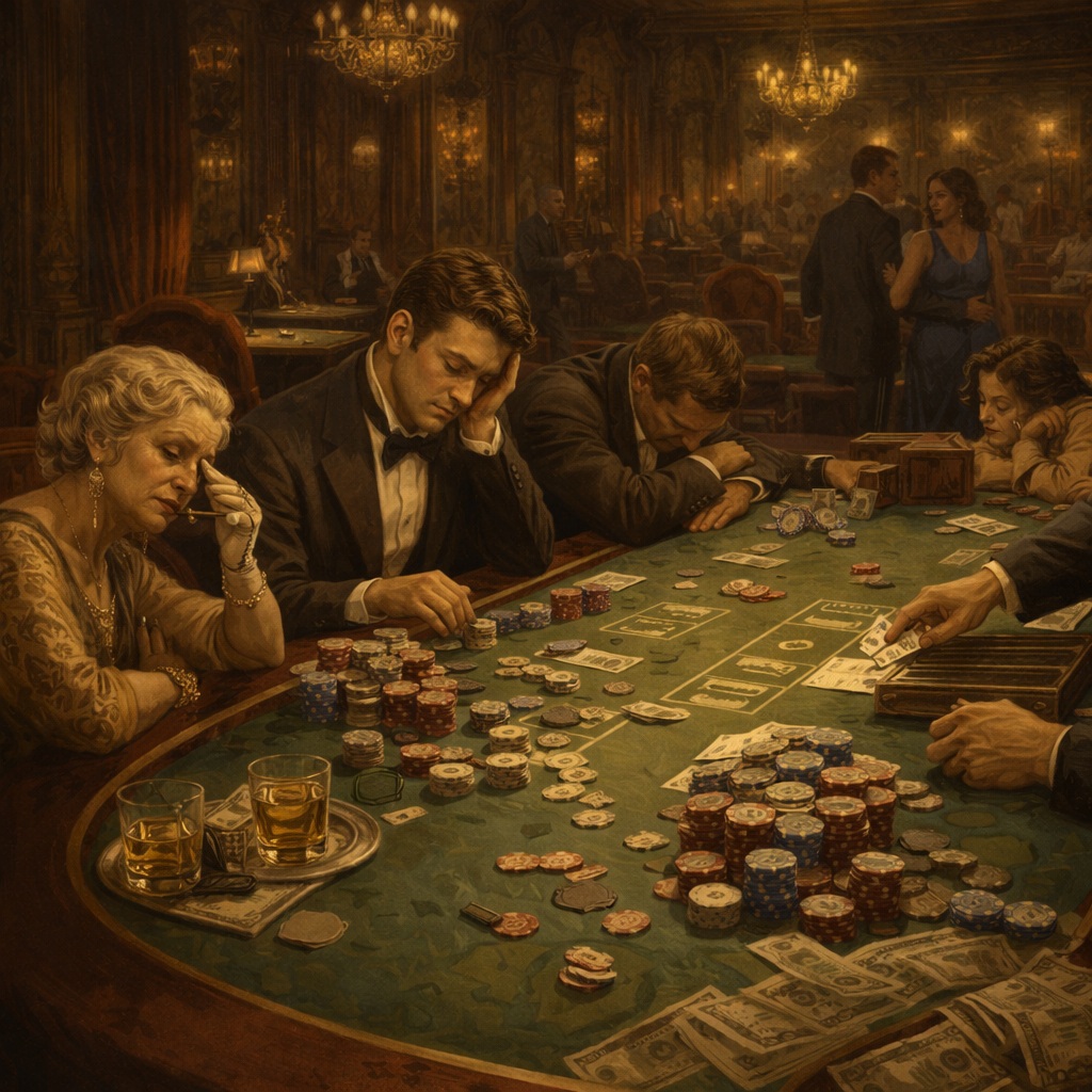 Dieron las tres. El ruso, la bailarina y la mayor parte de los puntos se habían marchado. Hacía fresco. Los mozos cerraron las ventanas. Con un suspiro de satisfacción, los verdaderos devotos del baccarat se instalaron cómodamente. Ahora podían saborear los pases, seguir a gusto todos los arabescos de la casualidad, perderse con delicia en todos los meandros de lo desconocido. Los caballeros pedían café o whisky, ellas sorbían por una paja menta mezclada con hielo. Talló un provinciano con fisonomía de procurador, después un cronista de boulevard, y otros después… Con fraternidad de enfermos en un sanatorio, los puntos se cuchicheaban las eternas frases “dos semanas de guigne… no he conseguido doblar aún… ha pasado seis veces… yo en la mala tiro a cinco… yo al revés… yo no, depende del temperamento del banquero… por fin un pase.. yo no juego más que a mi mano…” Los croupiers, autómatas, movían las palas… “hagan juego, señores… hagan juego… no va más… Doy… carta… carta… baccarat… ocho… tres…” Una señora, de cuarenta años o de cíen, quizás marquesa, quizás partera, jugaba invariablemente cinco luises por golpe. Usaba una amplia bolsa de mallas de oro, con cierre incrustado de perlas, donde guardaba el estuchito de las inyecciones, el dinero, una borla con polvos de arroz y dos lápices de maquillaje. Con celeridad impasible se empolvaba, se subrayaba la boca de rojo y los ojos de negro, y resucitaba así por quince minutos.