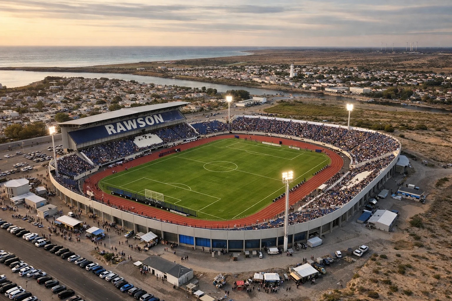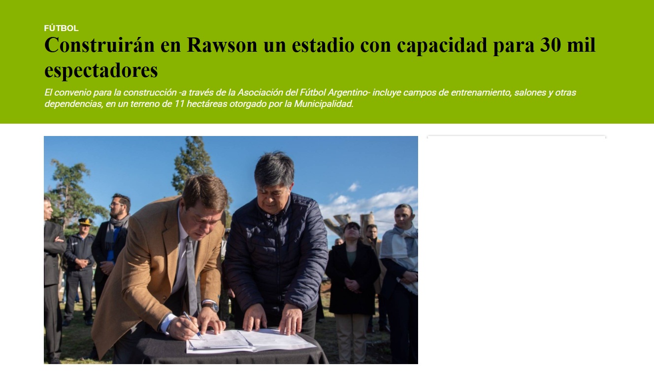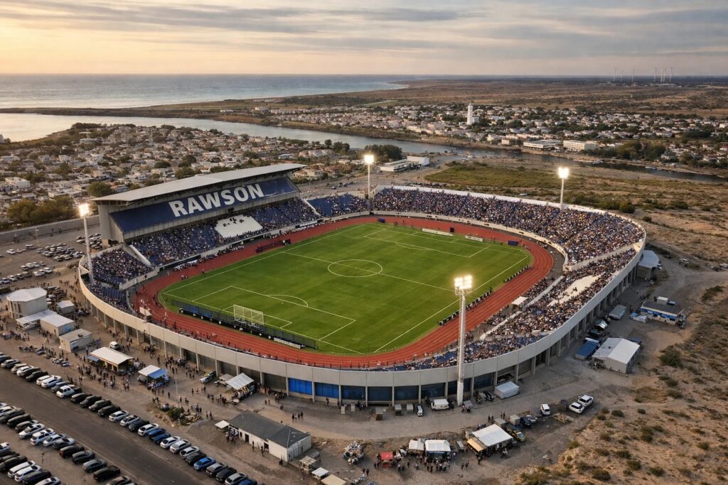 El 15 de septiembre de 2023, durante la celebración por el 158 aniversario de la ciudad, el intendente Damián Biss anunció la construcción de un estadio en Rawson con capacidad para albergar 30 mil espectadores y, acto seguido, firmó con el titular de la Liga de Fútbol Valle del Chubut, Javier Treuque, el convenio para avanzar con la obra.