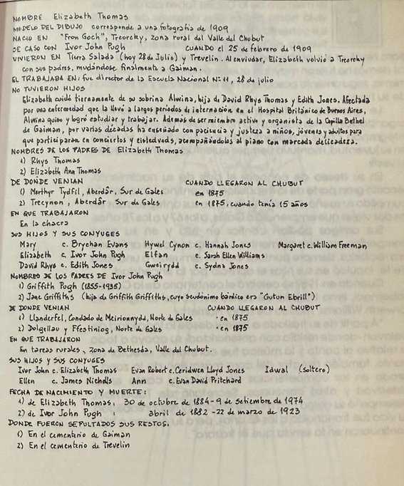 EI padre de Elizabeth se contó entre los primeros pobladores de la Colonia 16 de Octubre y poseyó también chacra en Treorcky, Valle Inferior del Chubut. Después de la gran inundación de 1899, decidió trasladarse a la zona cordillerana con su familia. Años más tarde, en 1908, regresó a la costa sobre todo en busca de una mejor educación para sus hijos. (Brychan Evans, su yerno, casado con Mary, quedó a cargo de sus intereses en el oeste).