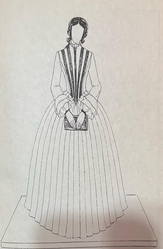Así lucía en su vestido de novia cuando, a los 19 años, contrajo matrimonio con Lewis Jones en Caergybi, norte de Gales. Poco más de un lustro después, se embarcaban juntos rumbo a la Patagonia. Debían hacer los aprestos necesarios para recibir a los colonos galeses que llegarían a Chubut en julio de ese año. Durante su escala en Carmen de Patagones, a Ellen se le desbocó el caballo que montaba y hubo de ser atendida de sus graves heridas por el Dr. George Arthur Humble, médico misionero que ejercía en el lugar.