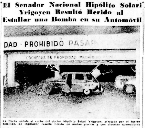La Triple A ya había hecho su primera intervención hacía apenas dos meses, con una bomba en el Renault 6 del senador radical Hipólito Solari Yrigoyen, que se oponía a un proyecto de ley sindical que centralizaba la recaudación de las obras sociales e impedía la democratización en los gremios. El jefe de los metalúrgicos, Lorenzo Miguel, lo había calificado “el enemigo público número uno de la clase obrera organizada”.