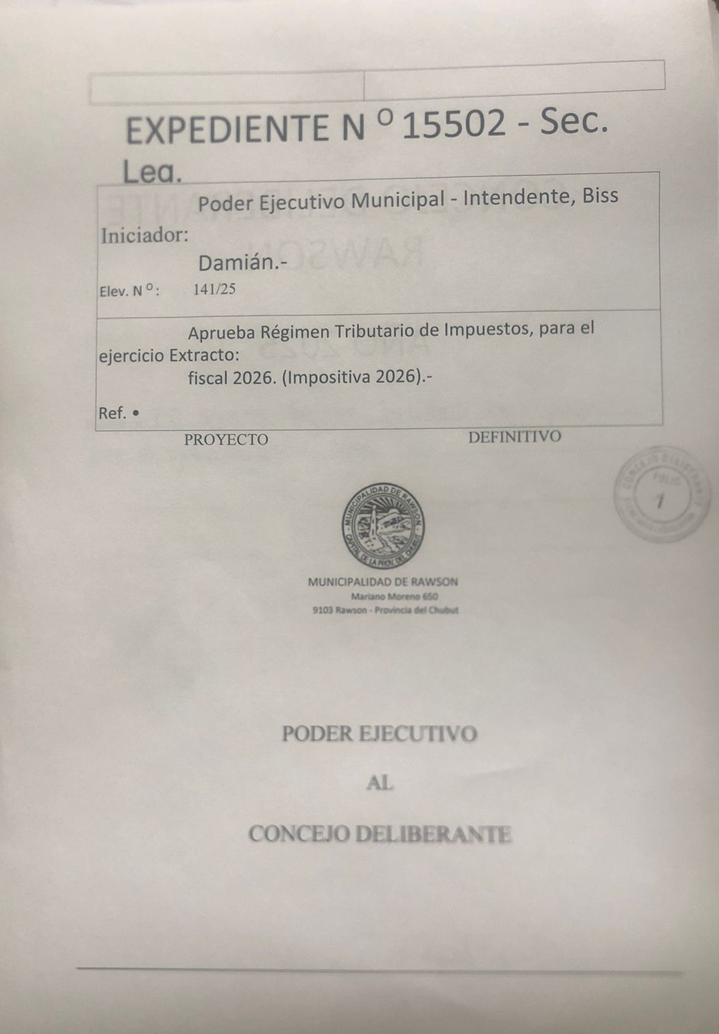 El Concejo Deliberante de Rawson se apresta a aprobar este miércoles sobre tablas el Régimen Tributario para 2026, una ordenanza que es otro saqueo a los bolsillos de los contribuyentes. El intendente Damián Biss dispuso un incremento general del 81,93% en las tasas municipales, que se suma a una escalada acumulada del 647% desde el inicio de su segunda gestión, el 10 de diciembre de 2023.