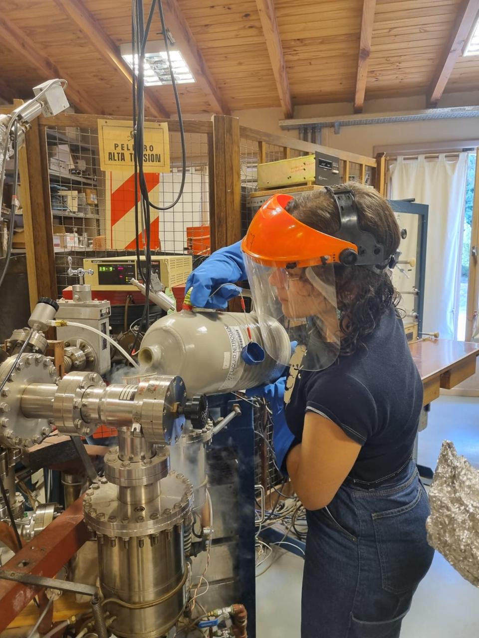 En su caso, se incorporó al Departamento de Física de Superficies, donde desarrolla un estudio sobre daño por radiación en materiales. “Estoy trabajando en un proyecto para estudiar el daño por radiación en materiales, que consiste en irradiar muestras de silicio metálico en un acelerador de partículas y después observar, mediante distintas técnicas, qué cambios sufren”, detalla.